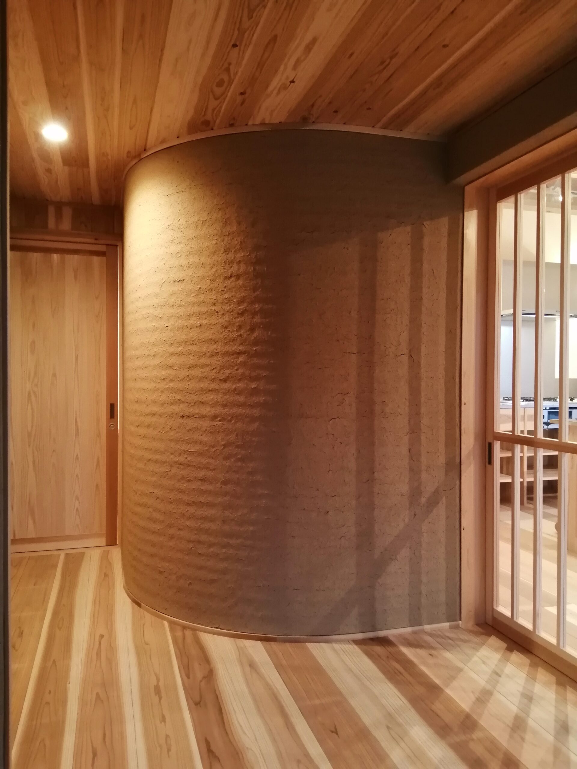 壁/和紙、杉羽目板、エッグウォール、荒壁