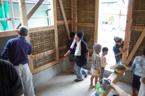 もちろんお施主様も参加。子供たちも塗りました。