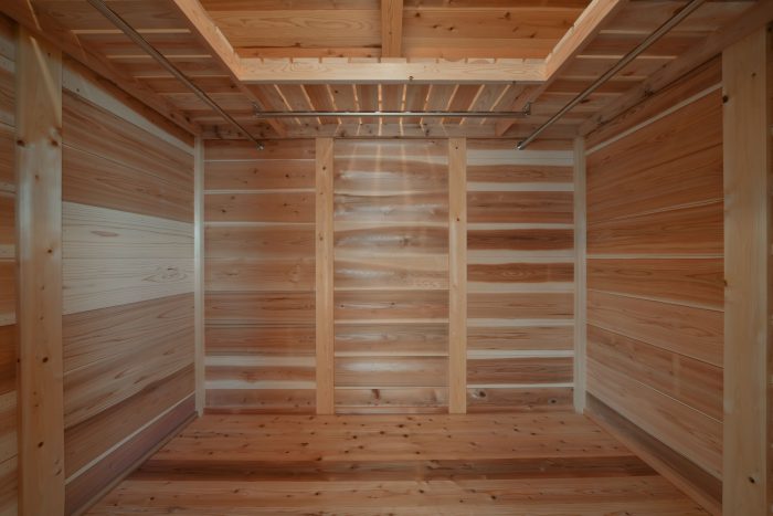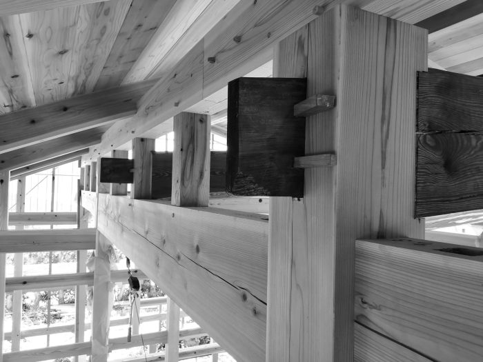 | 内部 | 天井:杉30mm厚勾配天井 壁:墨入り漆喰塗り+一部土壁+杉羽目板 床:杉30mmフローリング 建具:古建具利用 |